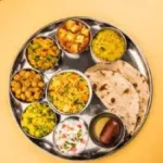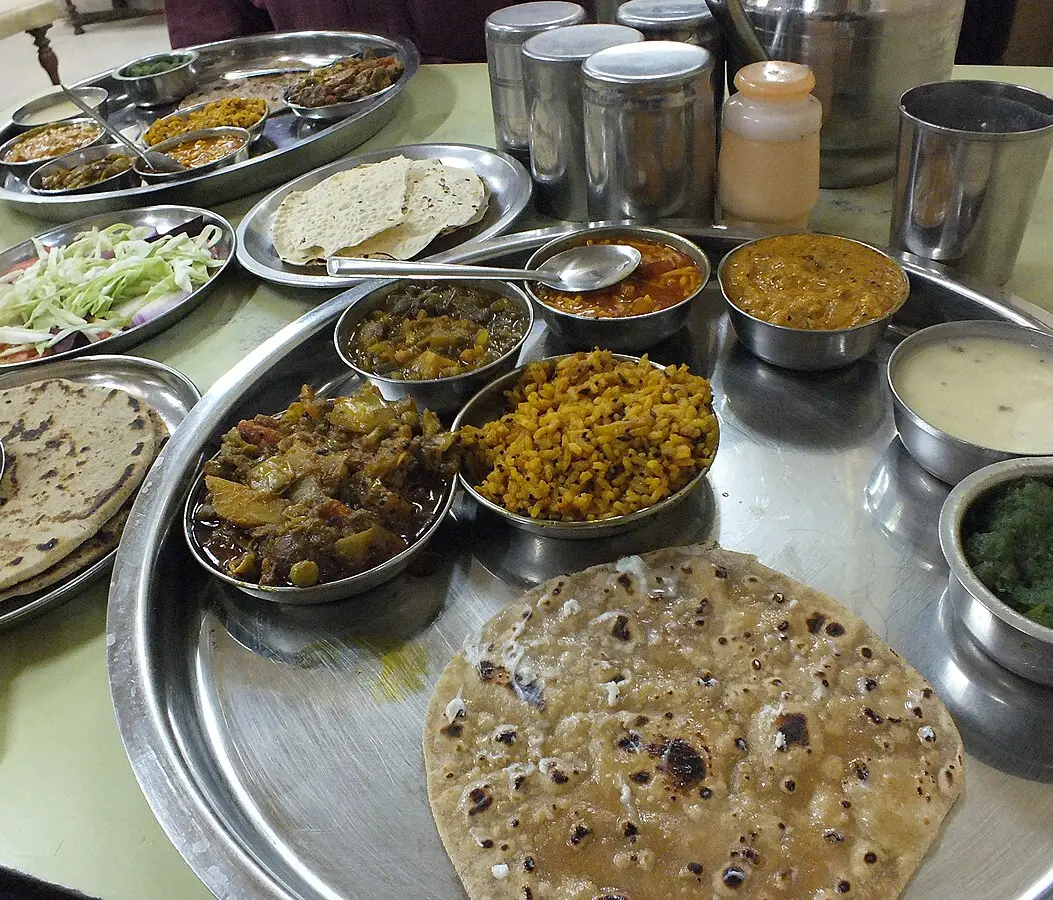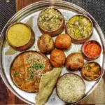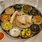 Traditional thalis featuring sweet, spicy, and tangy local flavors.